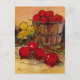 Cette aquarelle est l'image d'un seau de pommes qui débordent avec d'autres pommes jetées autour.