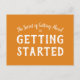 "The Secret of Getting Ahead is Getting Started", citation motivante. Carte postale avec arrière - plan orange avec texte blanc. Les couleurs sont facilement customisées avec l'outil de design facile à utiliser de Zazzle. N'oubliez pas de consulter nos autres options de conception! Envoyez-moi un courriel à beachpausedesigns@gmail.com si vous avez des questions à ce sujet ou à l'un de nos modèles!