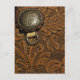 Customisez le pays et le thème de l'Ouest Cartes postales en cuir à selle blanche avec votre propre message personnel à votre cowboy ou cowgirl. Cette charmante carte à thème de ranch personnalisée comprend une numériquement photo de ferme améliorée d'une selle de cheval brun avec un design complexe en cuir à motifs floraux et feuilles.