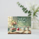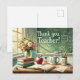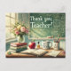 Voici votre carte postale de la Semaine de la reconnaissance des enseignants de style aquarelle ! 🎨📚 L'image présente un tableau noir vintage avec une calligraphie blanche élégante qui dit "Merci, enseignant !", ainsi que des éléments classiques de pomme et de livre dans un cadre de classe cosy.