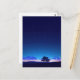 This tranquil postcard features a vast, deep indigo night sky filled with a brilliant canopy of stars and a glowing Milky Way. A solitary tree stands in bold silhouette against a soft blue and purple horizon, where distant hills and the tiny, warm lights of a quiet village peek through the darkness. The scene is finished with a textured, painterly feel, capturing a moment of profound peace and cosmic wonder. This postcard is a perfect choice for sending a thoughtful note, a calming greeting, or as a beautiful keepsake for anyone who finds inspiration in the night sky.
