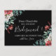 Carte Postale Black with Red Roses Will You Be My Bridesmaid Bohemian Invitation - présente blanc manuscrit et élégant script avec des roses beige rouge et crème et feuilles de verdure. Le revers de cette romantique Will You Be My Card est blanc. Veuillez noter que les enveloppes ne sont PAS incluses dans cette conception. Si vous avez besoin d'enveloppes, veuillez consulter notre collection ou les acheter séparément du marché.