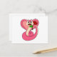 Très jolie carte du Lapin toujours pressé d'Alice . Belle qualité de l'impression en rose pastel.