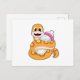 Très jolie carte du Lapin toujours pressé d'Alice . Belle qualité de l'impression en rose pastel.