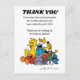 Remerciez toute votre famille et vos amis d'être venus à l'anniversaire de votre enfant avec ces cartes de remerciement d'anniversaire mettant en vedette tous vos personnages préférés de Sesame. Personnalisez en ajoutant votre message de remerciement personnalisé !