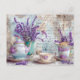 Lavender blooms paired with a classic tea service, highlighting the vintage, shabby chic, and country house style.