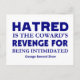 Il est important de ne pas être haineux, d'essayer de comprendre le point de vue de l'autre côté, mais là encore, c'est aussi effrayant. Sois courageux ! George Bernard Shaw serait fier de vous.