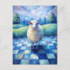 Carte Postale Sheep Blue Checkered Checking on Friend