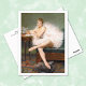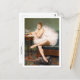 Une carte postale d'art avec un tableau de Pierre-Carrier Belleuse (1851-1932) intitulé A Seated Ballerina, vers 1900. Représentation d'une danseuse de ballet vêtue d'un tutu rose, écrivant une lettre. Belleuse était un artiste réputé pour ses pastels et ses peintures à l'huile, capturant la grâce des danseuses de ballet.