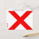 Code du drapeau alphabétique Signal Lettre V Carte postale. Drapeau maritime "Victor" - lettre V avec croix rouge contre carte postale de code maritime couleur arrière - plan blanche.