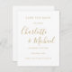 Doté de noms de style signature, cet élégant or et blanc enregistrer la carte de date peut être personnalisé avec vos détails spéciaux de jour de mariage dans la typographie or chic. Conçu par Thisisnotme©