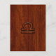 Un symbole du zodiaque Balance sur un fond riche de texture de grain de bois acajou brun. Un design moderne et chic pour une excellente idée de cadeau d'anniversaire personnalisé.