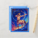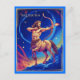 Carte postale dans le signe du zodiaque Sagittaire représentant un puissant archer centaure pointant une flèche enflammée vers le ciel. Entourée d'étoiles, l'image représente l'énergie céleste, soulignant l'essence mythique et aventureuse de ce signe de feu.