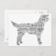 Carte postale amusante pour le propriétaire ou le formateur d'un chien d'alerte diabétique. La silhouette du labradoodle est remplie d'un nuage de mots pertinents pour quiconque forme son propre chien d'alerte diabétique.