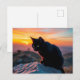 Carte postale silhouette de chat noir au coucher d