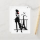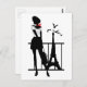 Carte Postale Silhouette noire rouge femme rétro avec Tour Eiffe