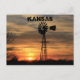 Une photo d'un moulin à vent Kansas, Arbre, Silhouettes, avec des cieux colorés, qui est au nord de Hutchinson Kansas USA. A l'extérieur dans le pays qui est lumineux et coloré sur une carte POST.