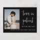 Cette carte postale d'invitation à la faire-part d'elopement mariage présente une calligraphie élégante et une police de typographie sans serif simple avec une photo sur un arrière - plan noir pour un look épuré minimaliste et moderne, ce qui est une belle façon d'informer sur votre mariage à venir. La simplicité de ce design ajoute une touche d'élégance à vos cartes faire-part mariages. Il fonctionne bien avec de nombreux thèmes mariages et certainement un grand ajout à votre mariage. Il suffit de customiser les noms et le libellé en quelques étapes simples et personnalisez la carte postale de l'invitation avec votre photo du couple heureux pour donner une touche personnelle à votre carte postale. Veuillez noter : La calligraphie élégante de l'expression "L'amour est patient mais nous ne le sommes pas" et "rien de fantaisie juste l'amour" avec les lignes et d'autres illustrations graphiques et éléments ne peuvent pas être modifiés, supprimés, ou déplacés. Elles sont réparées. ÉCHANTILLON : Si vous souhaitez obtenir un échantillon de cette carte postale, vous pouvez commander une seule carte (changez la quantité en UNE) et sélectionner vos préférences afin de voir comment elle a l'air et l'air. Vous pouvez consulter le reste de nos produits sur Zazzle à l'adresse https://www.zazzle.com/store/1creativemastermind/products Si vous souhaitez consulter notre boutique sur Etsy, vous pouvez à l'adresse 1CreativeMastermind.etsy.com