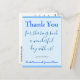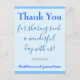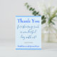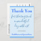 Ce design simple et personnalisable de carte postale de remerciement mariage comprend le message "Merci pour partager une journée si merveilleuse avec nous !" sur le devant, ainsi qu'un message personnalisable sur le dos. Il présente différentes nuances de bleu. Il pourrait être utilisé pour offrir de la gratitude à quelqu'un qui a été invité à une cérémonie de mariage.
