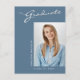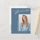 Cette carte postale moderne élégante mais simple de graduation, présente des éléments design du texte moderne fusionnés avec un élégant script de calligraphie. La photo des diplômés met en évidence l'avant de la carte tandis que l'arrière de la carte offre des espaces de texte personnalisés pour des informations sur la graduation et le futur voyage. Écriture blanche sur un bleu poussiéreux élégant ou facilement customiser l'arrière - plan à une couleur de votre choix. Pour voir d'autres articles comme celui-ci, visitez mon magasin ici à "www.Zazzle.com/LakeViewCardCo". Merci