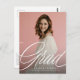 Avec son texte élégant, cette faire-part de remise de diplômes avec une photo et une carte postale d'invitation est la meilleure façon de célébrer votre diplômé et de montrer une belle photo senior. Cette conception verticale comprend un script classique "grad" avec votre texte personnalisé - nom, école, année, etc. Sur le dos de la coordination, vous trouverez de la place pour les détails de l'invitation de la fête de remise de diplômes dans le texte sophistiqué correspondant. Cette faire-part simple mais design fait partie d'une collection de Lea Delaveris Design. Trouvez plus de couleurs et de styles, de déco, de matériel de fête et plus encore.