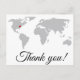 Une simple carte postale de remerciement avec une carte du monde sur le devant. Marker sur la carte peut être déplacé pour montrer l'endroit approprié où les célébrations ont eu lieu!