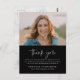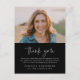 Une simple photo de mémorial de funérailles carte de remerciement avec écriture manuscrite merci et typographie minimale. Cliquez sur le bouton modifier pour personnaliser facilement ce modèle de remerciement avec vos propres détails et photographie de votre proche.