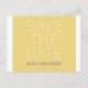 Annonce simple pour réserver la date en jaune et blanc avec une typographie moderne. Cette carte postale tendance et chic est facile à personnaliser avec vos informations de mariage. Pour plus d'options de personnalisation, cliquez sur le bouton Personnaliser.
