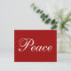 Cette carte postale de vacances présente un design de texte gai : Paix. Customisez le dos avec votre propre message personnel. Parfait pour envoyer des mailings de vacances d'affaires.