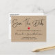 Élégante carte postale simple noir et blanc de save the date pour renouvellement de vœux. Caractéristiques de conception de ''save the date'' en écriture calligraphique moderne de couleur noir profond sur texture Kraft. Veuillez noter qu'aucun véritable Kraft ne sera utilisé, il s'agit d'une illustration numérique imprimée. Ajoutez votre message et plus de détails au verso.