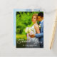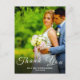 Conception de carte postale de remerciement de mariage avec photo personnalisée et écriture élégante.