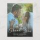 Conception de carte postale de remerciement de mariage avec photo personnalisée et écriture élégante simple.
