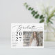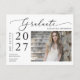 Yay ! Votre collège, lycée, collège/université, école de technologie, ou étudiant de programme d'études supérieures l'a fait et est diplômé! Célébrez l'un des moments précieux de leur vie et envoyez cette carte postale de faire-part de remise de diplômes. Cette carte postale présente un style minimaliste moderne simple et élégant, avec un magnifique script de calligraphie et la photo du diplômé. Il suffit de customiser et de remplacer le texte et les photos dans la zone de personnalisation. Remarque : les phrases élégantes du script de calligraphie "diplômé" ainsi que les lignes et autres illustrations graphiques et éléments ne peuvent pas être modifiées, supprimées ou déplacées. Elles sont réparées.