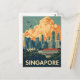 Bring the vibrant energy of Singapore city, into your space with this stunning retro travel poster. Showcasing the city's iconic skyline under a dramatic sunset sky, this illustration features detailed architecture. Designed in a vintage postcard style with warm tones and classic lettering, it's perfect for adding charm to any home, office, or gallery wall. An ideal gift for Singapore city natives, visitors, or lovers of cityscape art.