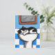 Carte postale de Whimsical cat art. Un chat noir et blanc dort dans le lavabo de la salle de bain. Créé à partir d'un tableau original 2008 Lisa Marie Robinson