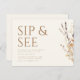 Cette belle invitation à l'automne met en valeur l'expression "Sip and See" dans un grand script élégant en haut, donnant un ton accueillant et festif. Ci-dessous, vous trouverez de l'espace pour tous les détails essentiels de la fête, tels que la date, l'heure et l'emplacement, pour vous assurer que les clients ont toutes les informations dont ils ont besoin. Sur le côté droit, des feuilles et des fleurs douces de chute d'aquarelle apportent une touche de charme et de chaleur automnale. Cette invitation réfléchie capte l'esprit de convivialité et de gratitude, ce qui en fait le choix idéal pour inviter des proches à rencontrer votre nouveau bébé.