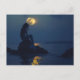 Sirène assise sur un rocher avec la lune dans l'arrière - plan