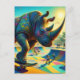 Un joli Rhino surréaliste coloré sur un skateboard AI généré art