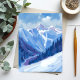 Carte Postale Ski Mountain | Blue Watercolor Mountain Range