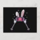 Carte Postale Ski Rabbit avec bâtons de ski et lunettes de ski