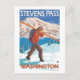 Carte Postale Skier transportant ski de neige - Stevens Pass, WA