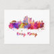 Carte Postale Skyline Hong Kong V2 en aquarelle