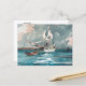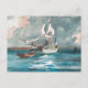 Une carte postale avec le tableau de Winslow Homer (1836-1910) Sloop, Bermudes (1899). Un paysage marin d'une boucle dans les eaux bleues de l'eau au large des Bermudes. Homer s'est rendu aux Bermudes, à Cuba et en Floride. Beaucoup de ses tableaux viennent de cette région.