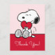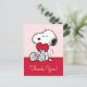 Envoyez vos remerciements avec la plus pure expression d'affection ! Cette belle carte de remerciement Snoopy présente le beagle adoré tenant doucement un cœur rouge vif sur un fond rose doux. C'est la carte idéale pour exprimer une profonde gratitude, que ce soit pour un cadeau attentionné, un geste gentil ou pour célébrer l'amour à toute occasion. Le message à l'intérieur de la carte correspond à vos sentiments sincères. L'illustration classique de Snoopy en noir et blanc associée à l'arrière-plan rose doux crée un message de vœux instantanément chaleureux et affectueux que les destinataires vont chérir.