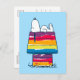 Envoyez des salutations colorées avec cette carte postale Peanuts représentant Snoopy devant sa maison de chien aux couleurs de l'arc-en-ciel. Parfaite pour envoyer des messages joyeux, célébrer des moments spéciaux ou simplement partager le charme vibrant de Snoopy, cette carte postale est un excellent moyen de répandre la positivité et l'amusement.