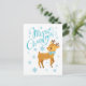 Ce dessin présente une scène hivernale d'un cerf mignon qui se promène à travers des flocons de neige avec le texte populaire "Joyeux Noël" écrit dans la célèbre typographie bleue. #Noël #fêtes #saisonnière #fête #hiver #flocons #mignon