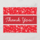 Envoyez un merci avec cette carte postale recouverte de flocons de neige blancs sur un arrière - plan rouge. La carte a une bande rouge au centre avec le texte "Merci !" en lettres blanches.