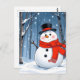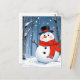 Carte Postale Snowman dans la forêt froide avec foulard rouge