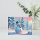 Carte Postale Snowman de Noël dans la forêt d'hiver