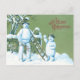 Temps père et fils ! Cette impression vintage de Noël représente un père et un fils de bonhomme de neige jouant dans la neige.